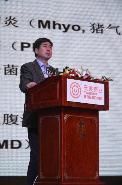 首先中國農業大學動物醫學院教授、博士生導師楊漢春教授做了題為《養豬生產中的生物安全體系》的專題發言。他通過對我國豬病總體流行現狀與趨勢的分析,語重心長地說到:“如果不再重視生物安全,未來的趨勢將是老病再現——舊貌換新顏,新病不斷有”。隨后,他在發言中高度贊賞天兆豬業董事長余平先生對生物安全的重視。最后,楊教授認為:豬場生物安全體系是一項系統工程,需要做到制度化、常態化、做到位!