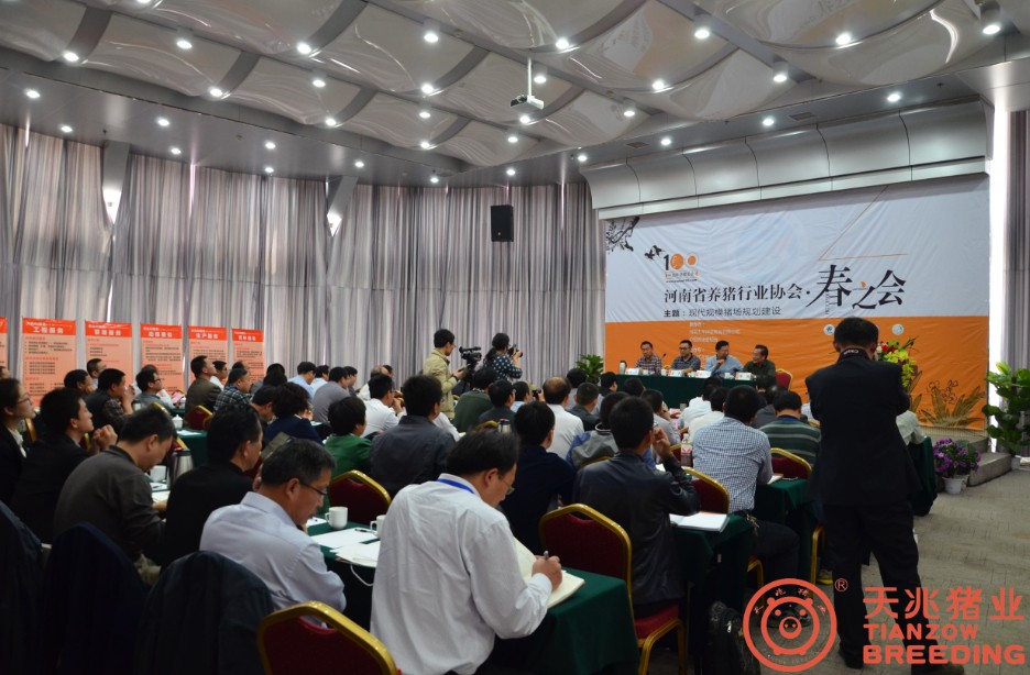 2014年3月29日—30日,由河南省養豬行業協會主辦,河南天兆畜牧有限公司、牧原食品股份有限公司協辦的“2014年河南省養豬協會‘春之會’” 在河南省南陽市唐河迎賓館隆重召開。本次會議通過嘉賓演講和實地參觀等方式,就“現代規模豬場規劃建設的思考”的主題展開交流和討論。天兆豬業董事長余平先生、牧原股份董事長秦英林先生,以及來自河南省及周邊省市養殖同仁近100余人參加了會議。