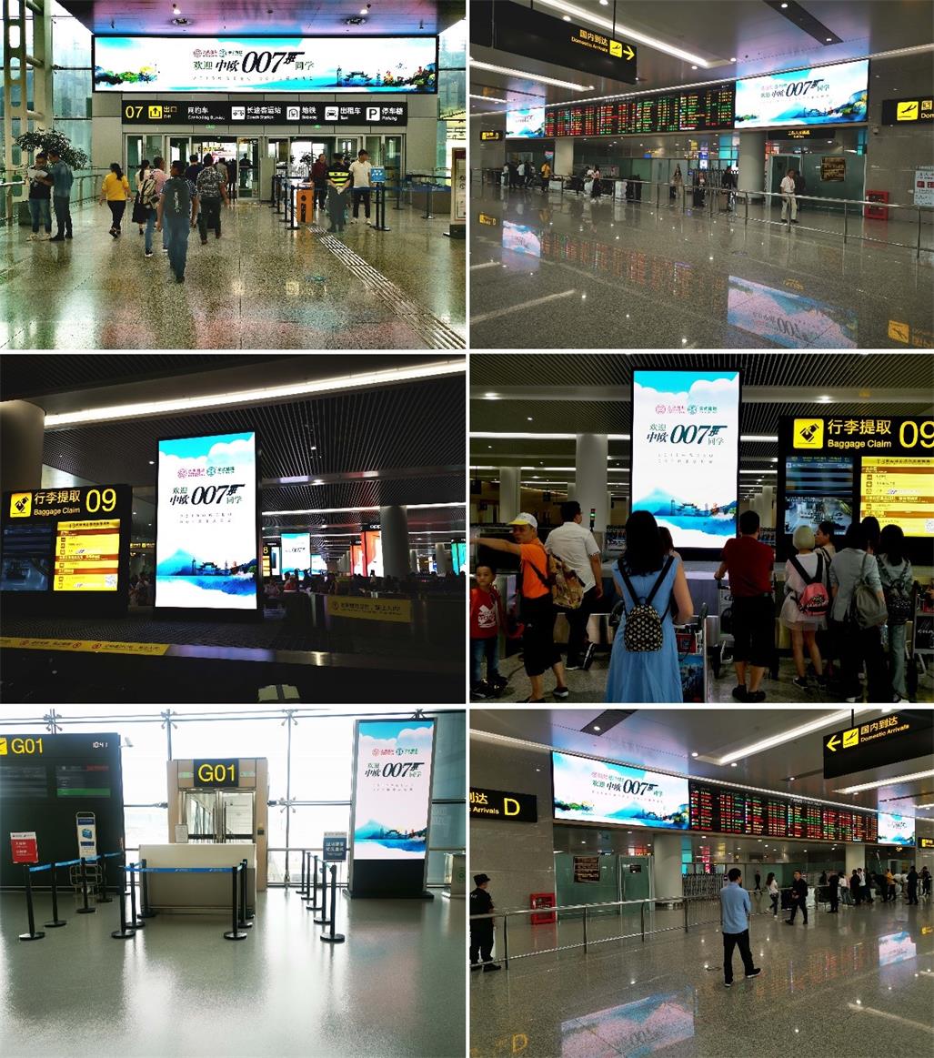 作為東道主,天兆豬業在重慶江北國際機場出發、到達大廳及行李提取處的LED屏幕上亮相,盛情歡迎前來參加班會的企業家同學們。