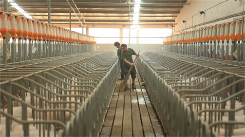 其實無論是多點式生產(chǎn)還是批次化生產(chǎn),本質(zhì)都是在講“雞蛋不要放在同一個籃子里”。應用這個原理,天兆豬業(yè)從多年前便開始執(zhí)行多點式批次化生產(chǎn)模式,即母豬繁殖場、保育場、培育場等分開,并據(jù)此構建了“1+2+4”的多點式生產(chǎn)模式, “1”即為一個種豬場,“2”為兩個保育場,“4”為四個培育育肥場。