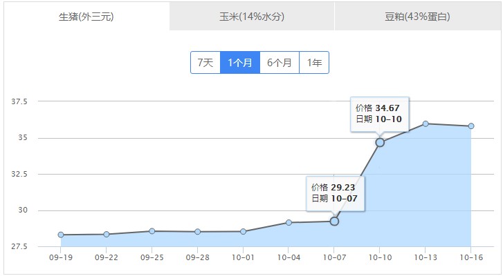 近1個(gè)月全國外三元豬價(jià)走勢圖